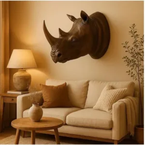 Rhino Crest Wall-Mounted Rhino Sculpture | Handmade Wildlife Decor
