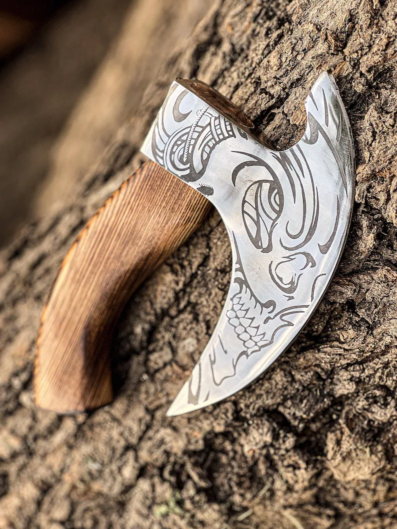Custom Bushcraft Axe, Melee Viking Axe, Pizza Axe, Unique Slicer, gift for husband, gift for him, birthday gift, Christmas gift