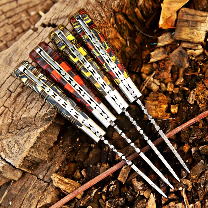 🔪 5 Colors – Custom Hand-Forged Damascus Steel Camping Tool