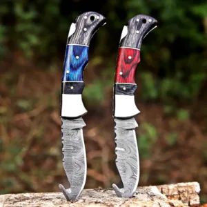 🔪 5 Colors – Custom Hand-Forged Damascus Steel Camping Tool
