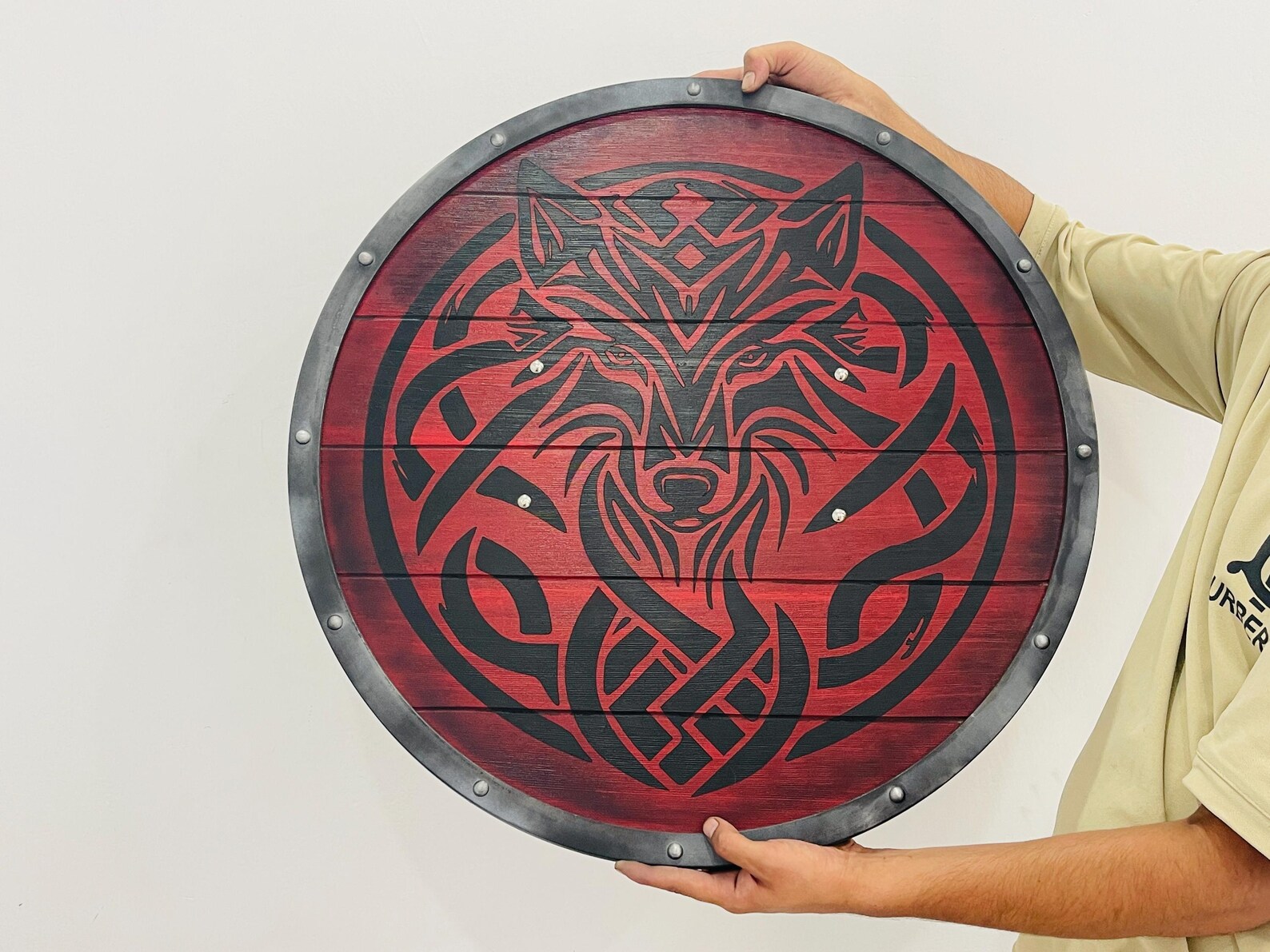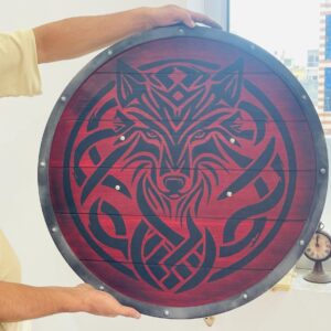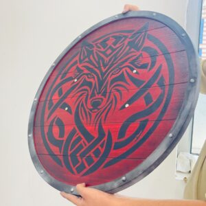 The Viking Shield Fenrir Red Wolf Battleworn Viking Shield is a stylized, decorative replica Viking Shield inspired by Norse mythology and warrior culture. The Viking round shield is made of wood. It was often use by Viking warriors in battle. It is a defensive tool and a symbol of status or identity. If  you can’t find your favorite item in my shop, you can also send me the picture or link of your choice. I will make the item accordingly.