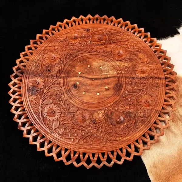 Crafted from premium hardwood, it features intricate floral and lattice carvings, making it a statement piece for any home. The table is sturdy, durable, and timeless, ensuring it remains a cherished part of your décor for years to come.