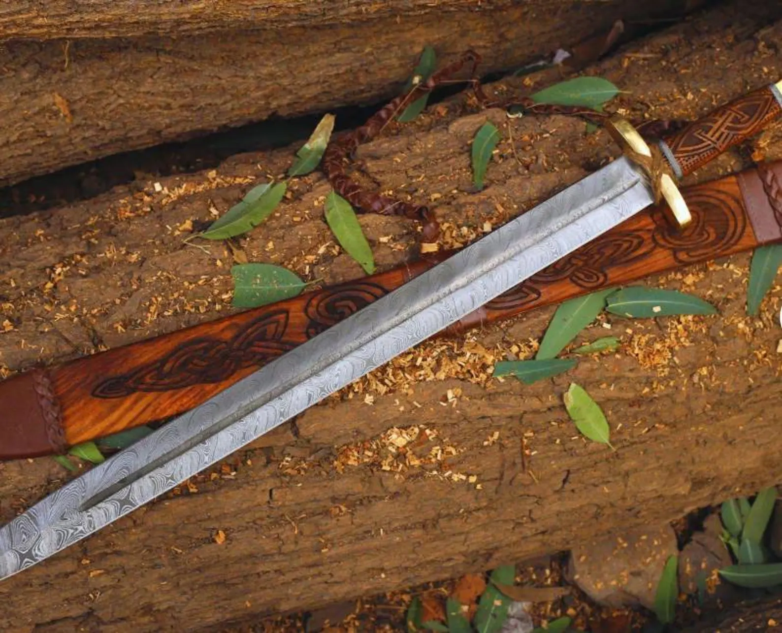 Experience the artistry of a hand-forged Damascus steel sword paired with an ornate wooden scabbard. This fully handmade piece is perfect for collectors, history lovers, and those searching for an unforgettable gift.