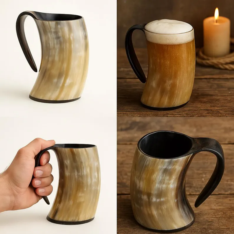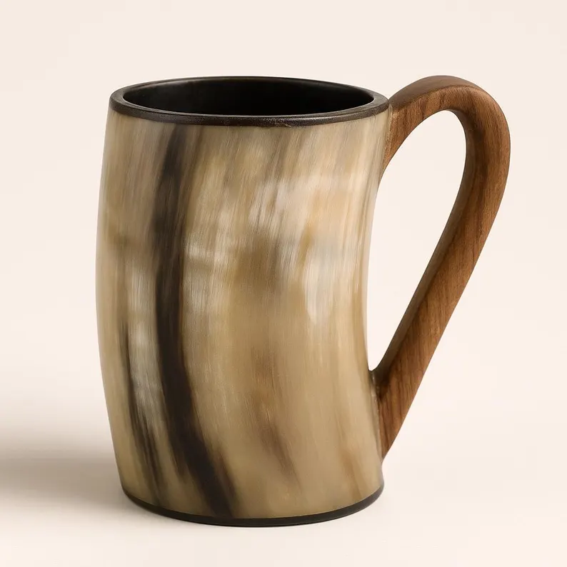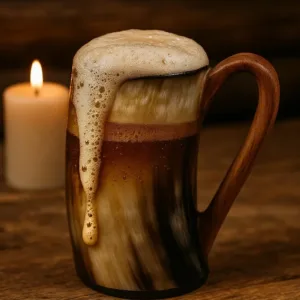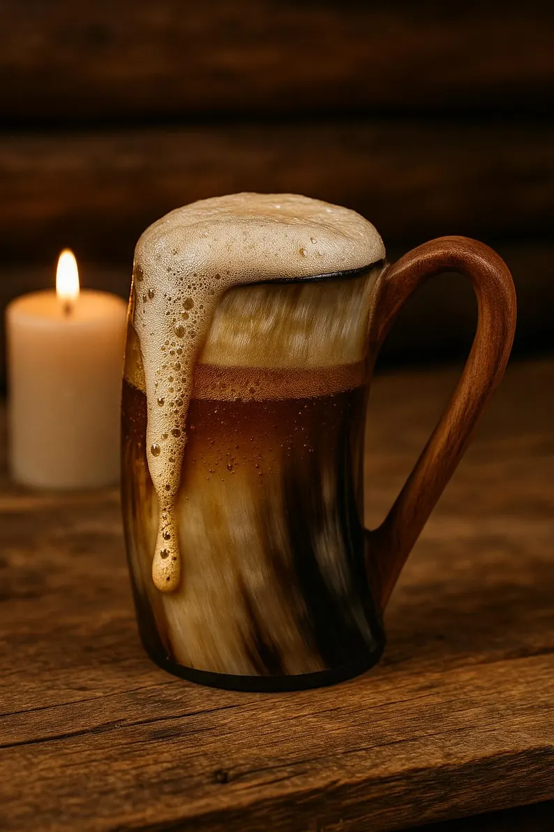 Channel the spirit of the Norse halls with this elegant horn mug featuring a sturdy handle — combining ancient style with everyday usability.