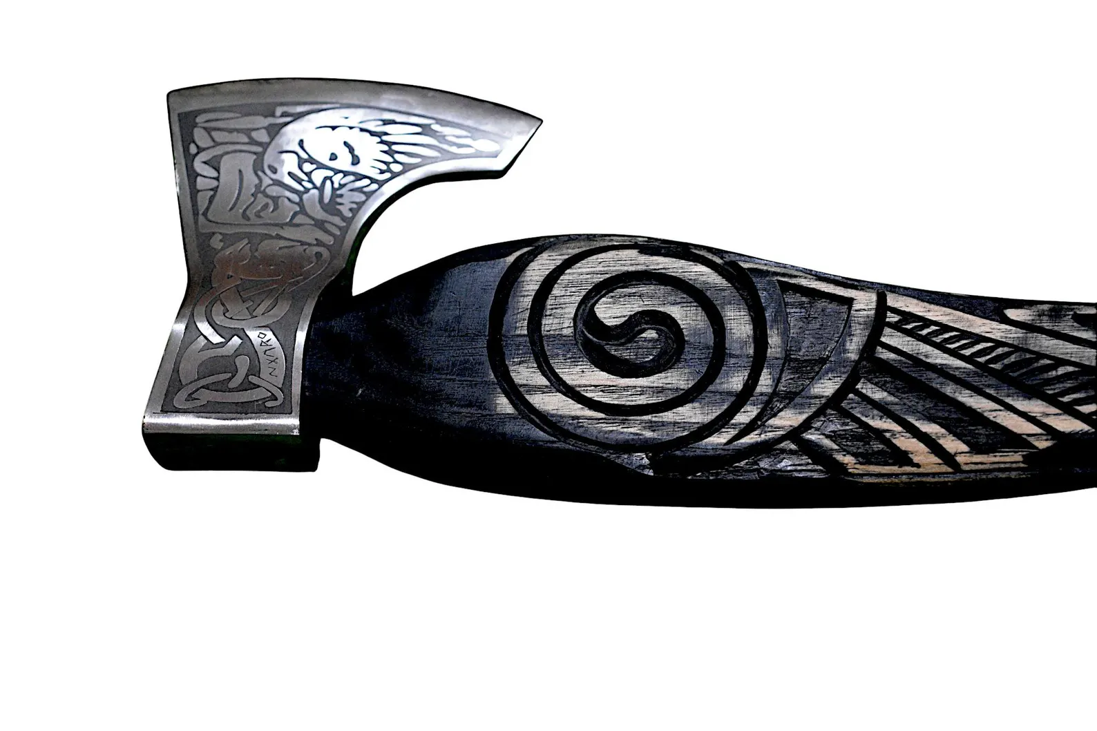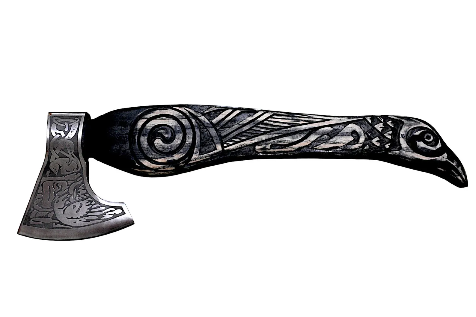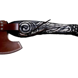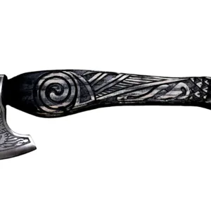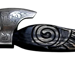 Unleash the spirit of the Vikings with this masterfully crafted raven-themed axe. Designed with historical Norse influences, this axe boasts a high-quality carbon steel blade, intricately engraved with traditional Viking motifs. The wooden handle is expertly hand-carved, featuring a striking raven design, symbolizing wisdom and power in Norse mythology. Whether you’re looking for a display-worthy collector’s piece, a unique gift, or a functional tool for outdoor use, this axe delivers both style and durability. A must-have for Viking enthusiasts, reenactors, and history lovers alike.