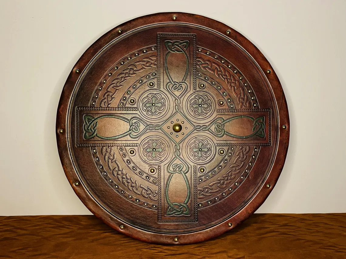 Scottish Targe Shield | Leather Celtic Cross Shield | Handmade Leather Viking Shield For Home Decor and Gifts Shield