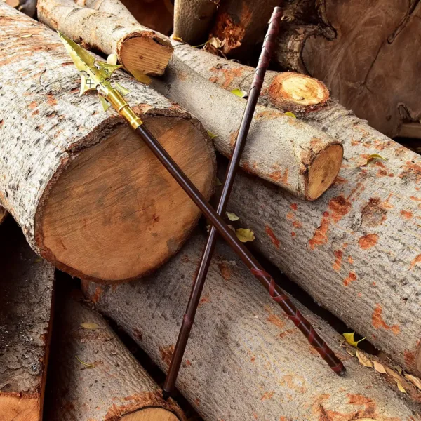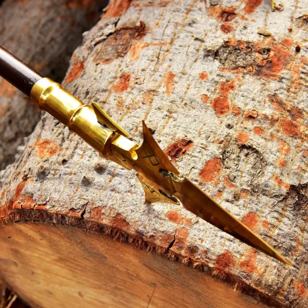 Premium Materials: Brass spearhead, leather-wrapped metal shaft, and optional wooden box.