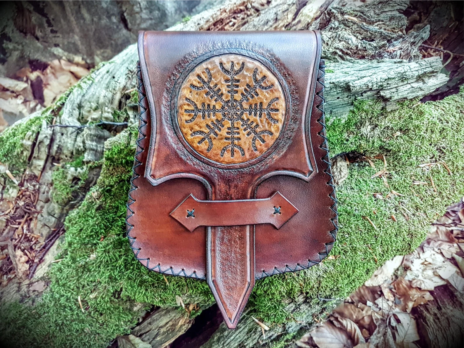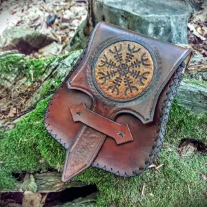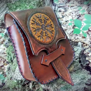 Medieval, Celtic, Viking, Norse, LARP, Cosplay, Re-enactor’s. Attractive Lady’s Hip Pouch or Purse or Pungr and in Gaelic: Spa’ran. This beautifully crafted Pouch was designed to ‘hang’ on a long belt, wrapped around your body, just above your hips. There were no Pockets in Medieval clothing and so small coin purses or posi were very necessary. These larger Pouches were designed to hold a myriad of small belongings, which were necessary if you were to be away from your home during the day.