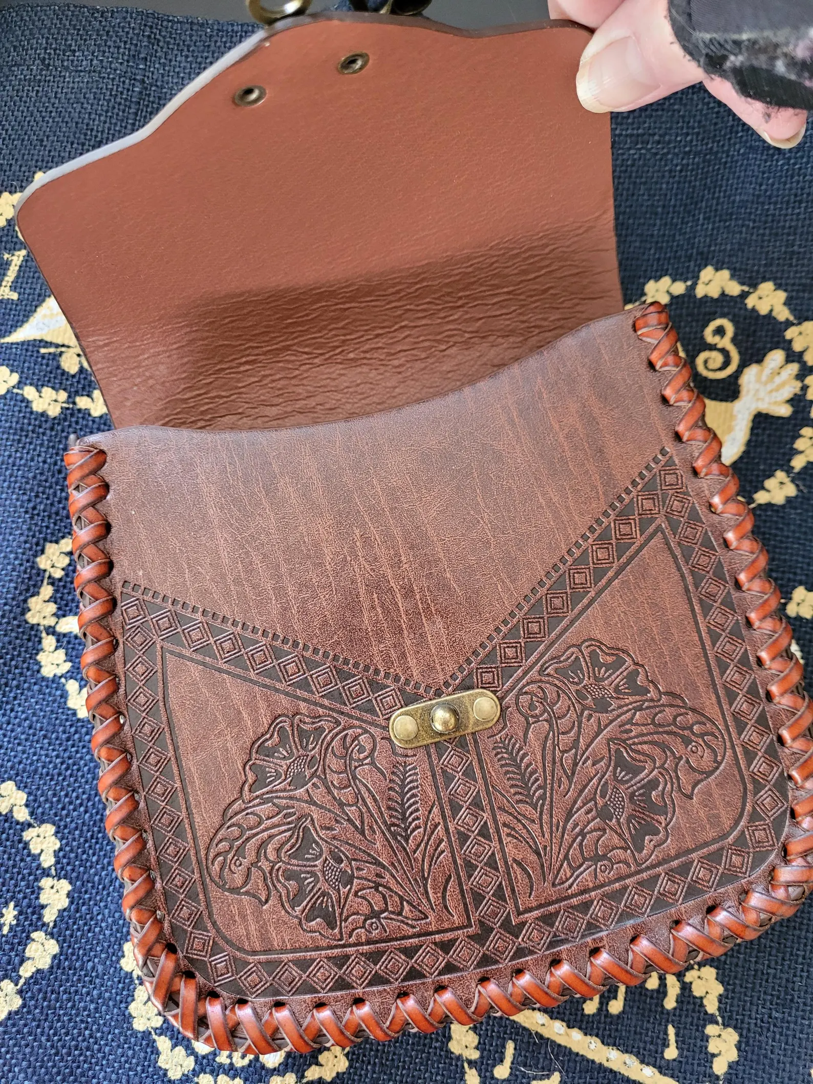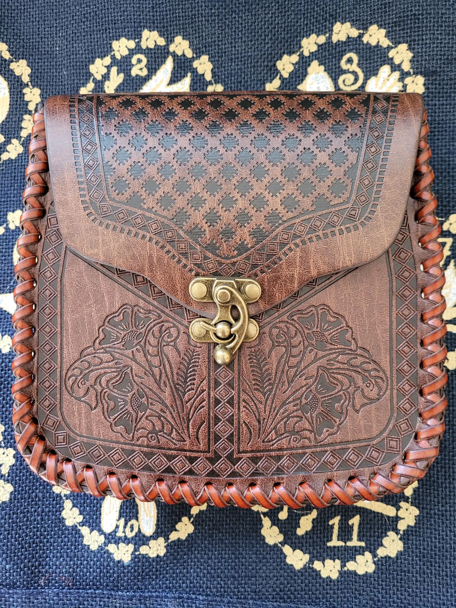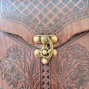 The Pouch measures approx 7ins.(17.5cm) in height. 6.75ins(17cm) wide and 2ins (5cm) in depth. They are hand stitched all round and have an attractive bronze ‘swing lever’ type ‘latch’, to secure the opening flap. Ideal gifts for Re-enactors of various historic periods.