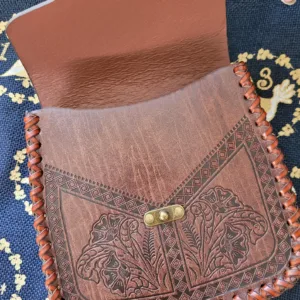 Medieval, Celtic, Viking, Norse, LARP, Cosplay, Re-enactor’s. Attractive Lady’s Hip Pouch or Purse or Pungr and in Gaelic: Spa’ran. This beautifully crafted Pouch was designed to ‘hang’ on a long belt, wrapped around your body, just above your hips. There were no Pockets in Medieval clothing and so small coin purses or posi were very necessary. These larger Pouches were designed to hold a myriad of small belongings, which were necessary if you were to be away from your home during the day.