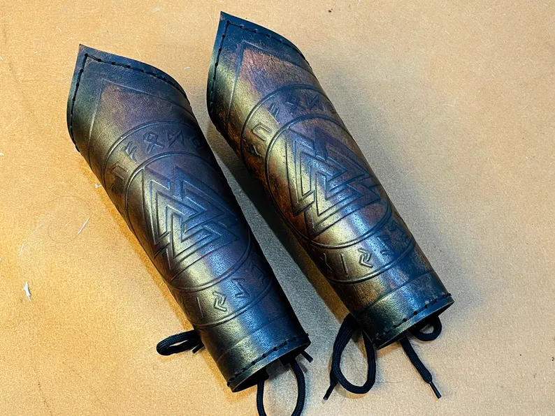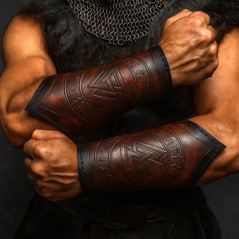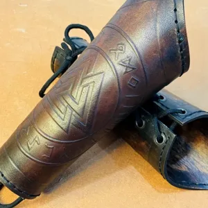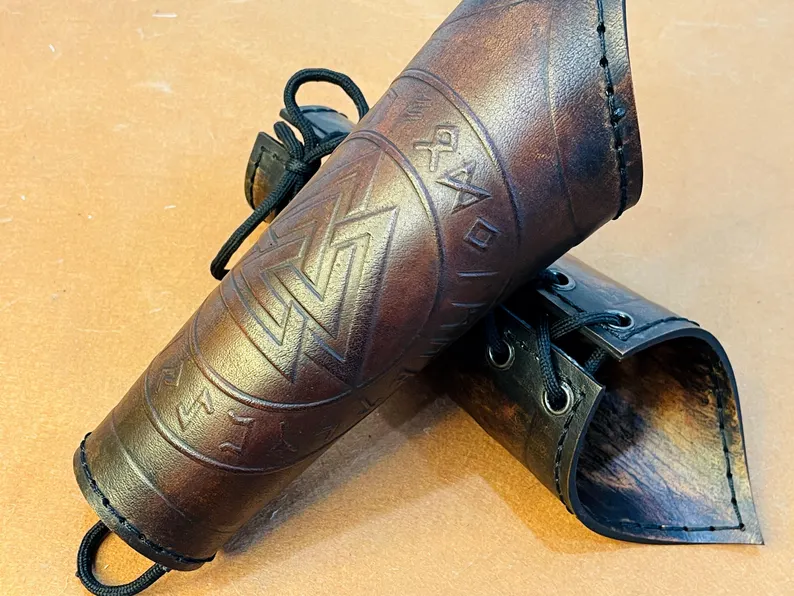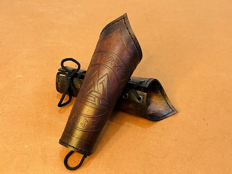 Leather Bracer | Norse Valknut Leather Bracer Viking Bracer Arm Guard Pair Of Two For Costume Leather Armor