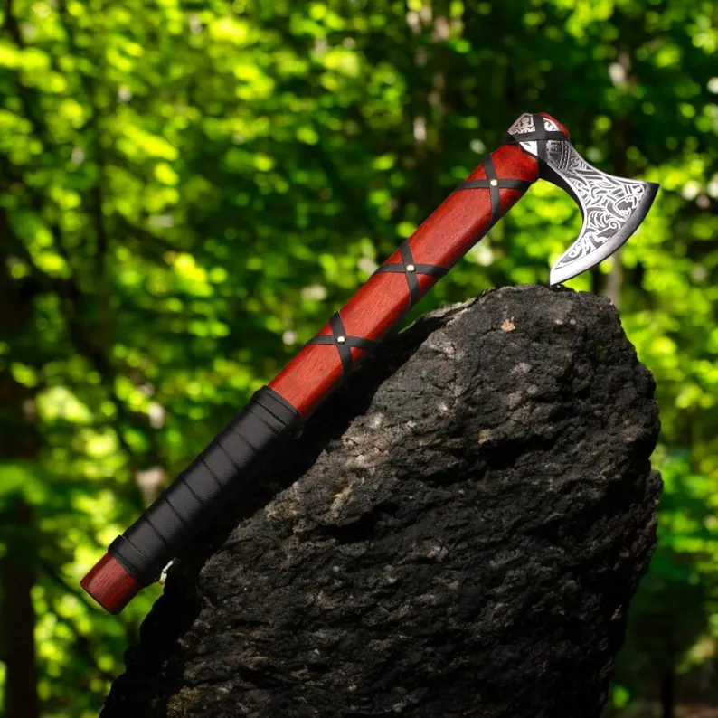 Whether you’re treating yourself or searching for a meaningful gift, you’re in the right place. This handcrafted Viking-themed axe is both a functional tool and a stunning piece of art—perfect for axe collectors, outdoor lovers, and history enthusiasts alike. Please handle with care—this is a sharp, real tool!