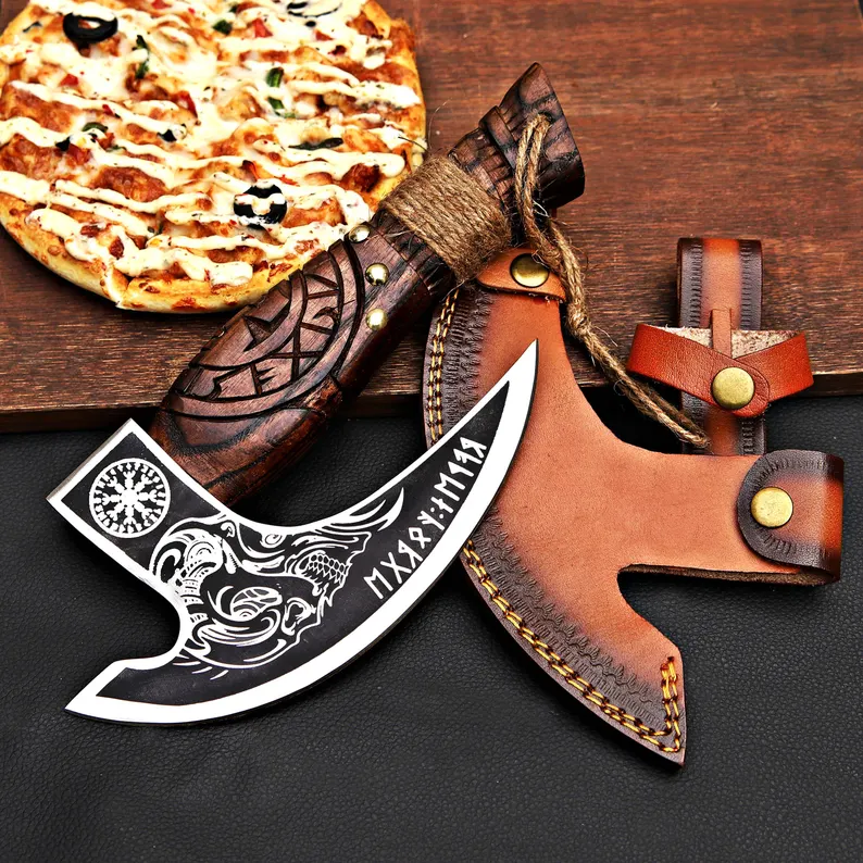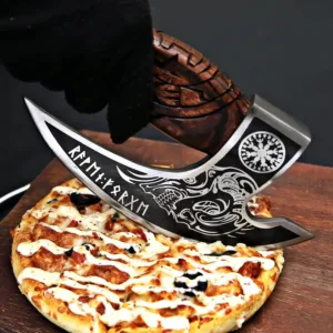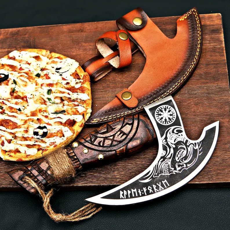 This Viking-style pizza axe is both a striking kitchen tool and a memorable gift. Designed for function and aesthetics, it’s perfect for slicing pizzas with flair or as a decorative piece for chefs, collectors, or Viking enthusiasts.