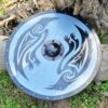 An 18″ Viking shield is a relatively small round shield, often used for decorative, cosplay, LARP, or display purposes rather than full battle reenactment (though lighter combat styles may still use it). The compact size gives it a striking look and makes it easier to handle or mount on a wall.