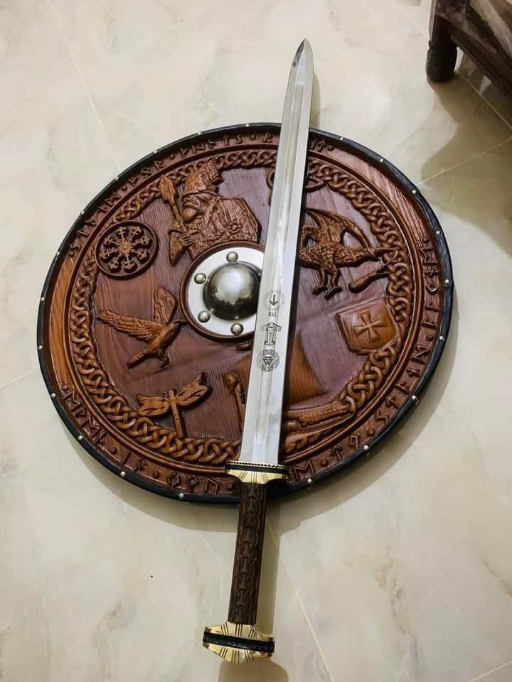 An 18″ Viking shield is a relatively small round shield, often used for decorative, cosplay, LARP, or display purposes rather than full battle reenactment (though lighter combat styles may still use it). The compact size gives it a striking look and makes it easier to handle or mount on a wall.